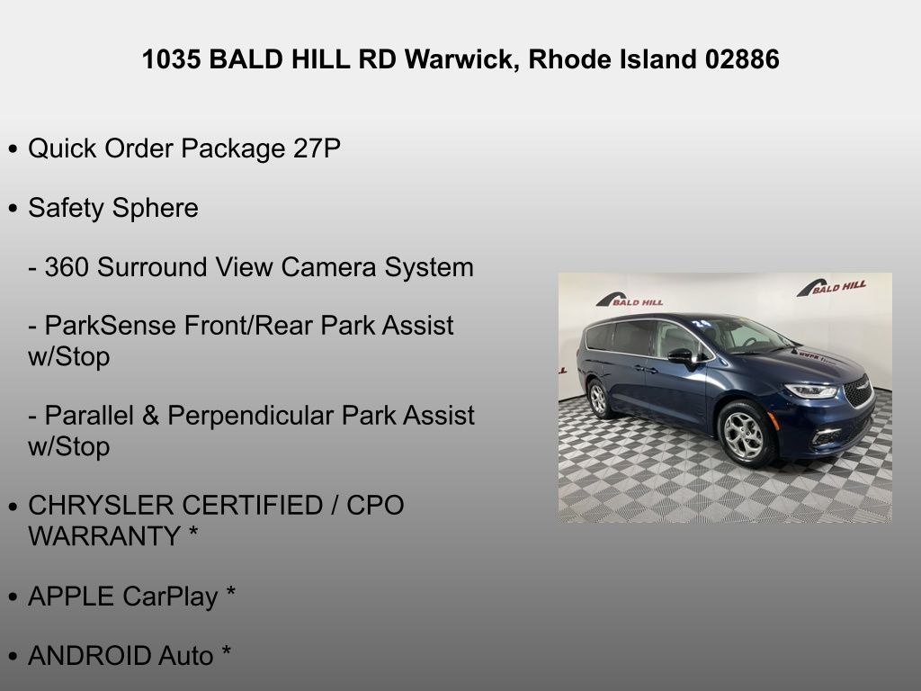 The Pacifica's stunning Fathom Blue Pearlcoat exterior exudes a sense of sophistication, while the well-appointed interior, featuring Nappa Leather Bucket Seats and a Power Folding 3rd Row Seat, provides unparalleled comfort and versatility. With the Chrysler Certified Pre-Owned Warranty, you can drive with confidence, knowing your investment is protected.
