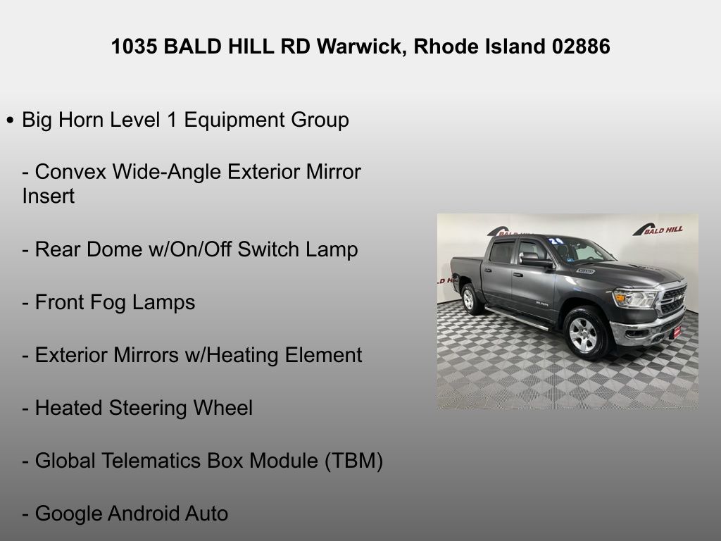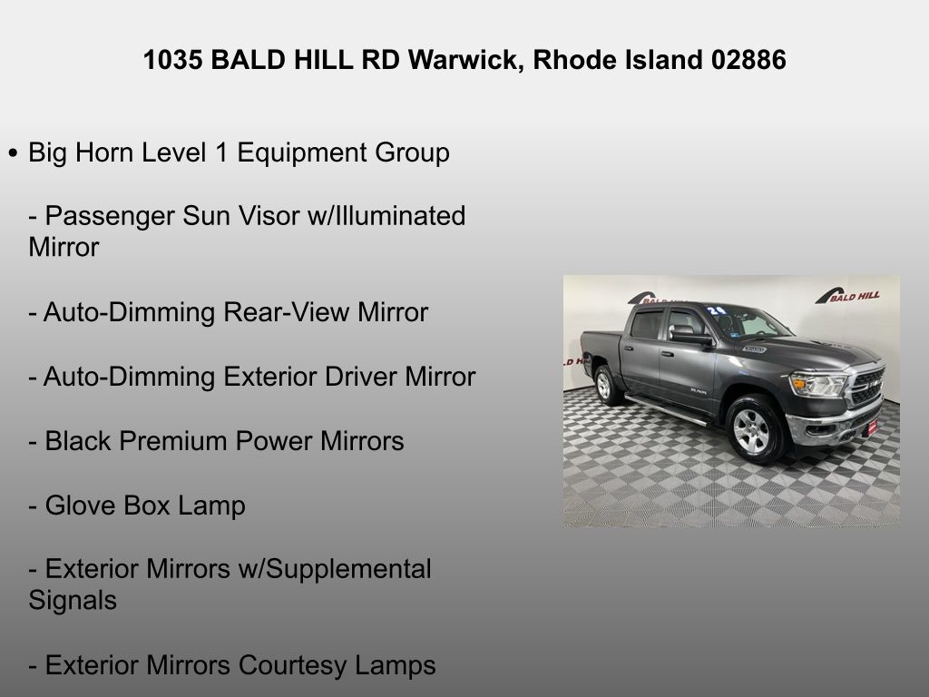 Inside, the Big Horn/Lone Star trim level offers a wealth of premium features, including the Uconnect 5 infotainment system with an 8.4" display, SiriusXM satellite radio, and a host of connectivity options. The heated front seats and steering wheel ensure you stay comfortable, even on the coldest days, while the power-folding mirrors and auto-dimming rearview mirror add convenience and safety.